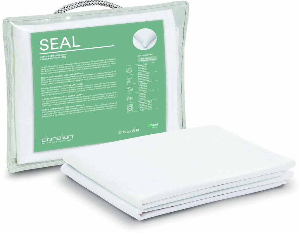 La funda de almohada está realizada con una doble capa de Tencel impermeabilizado gracias a un procedimiento específico. El resultado es un producto suave y fresco con óptima capacidad higroscópica y de transpiración, capaz de proteger la almohada de cualquier tipo de elemento externo, manteniendo una lavabilidad muy elevada, hasta 90°C en la lavadora.