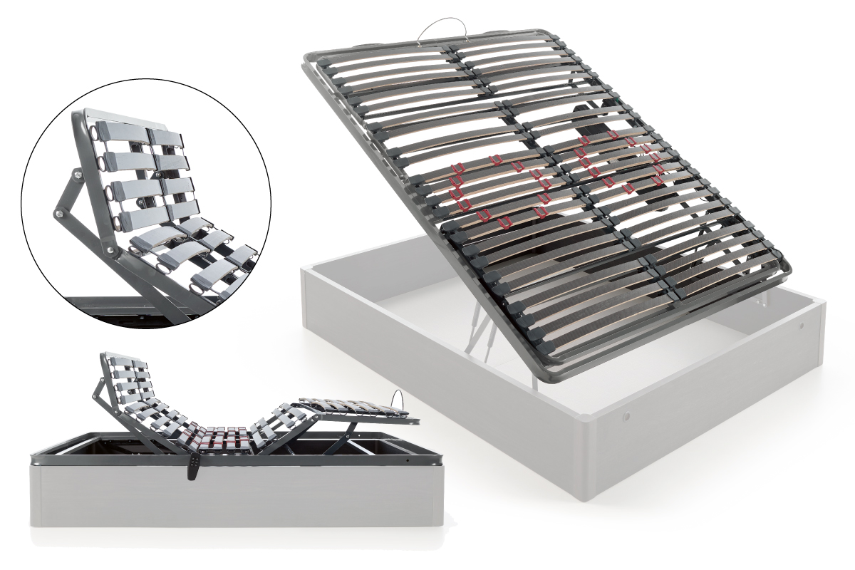 Disfrutarás de su bastidor metálico de 50x50x1,5 mm con 5 planos de articulación. Rótula de suspensión de caucho. Su confort se ve reflejado en sus 24 lamas de haya.