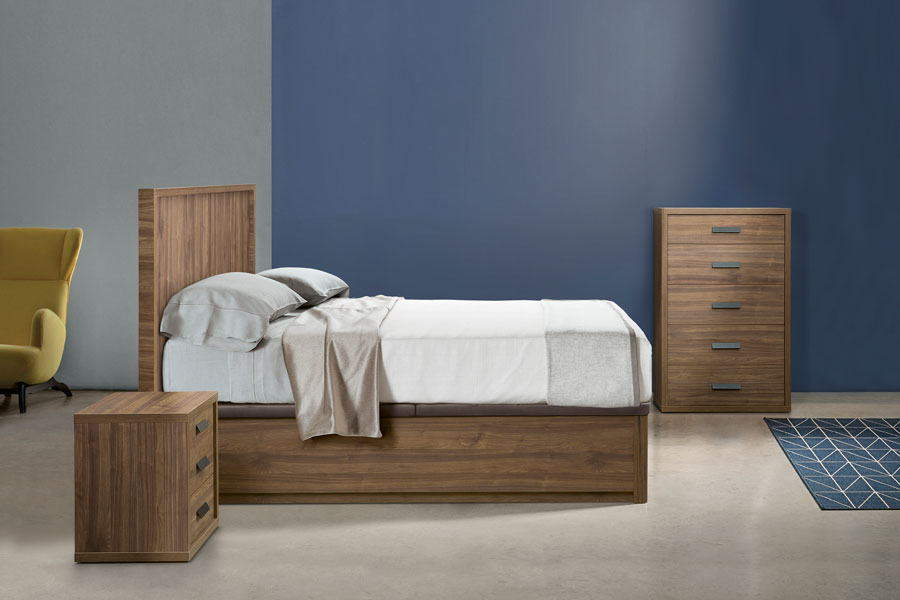 - Pata madera maciza acabada a juego del costado, con radio adaptado al colchón.