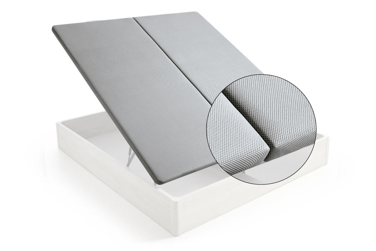 La tapa Twin, tapizado en 3D ultra transpirable con tratamiento antideslizante y foamizado de 6mm de poliuretano.