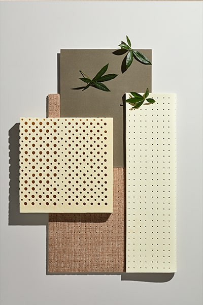 Este material natural extraído del caucho, es elástico, aporta una firmeza suave y gran adaptabilidad. Destaca por su excelente elasticidad, repele el agua y la humedad.