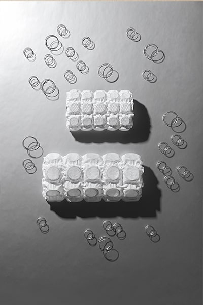 Es posible disfrutar de una capa superior suave, cómoda y envolvente de materiales naturales, a la vez que de un soporte sólido y resistente después. En su almohadilla superior se encuentran miles de nanomuelles ensacados que nos permiten movernos libremente.