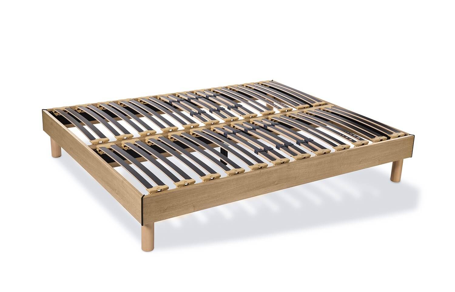 Somier fijo con láminas de madera de haya y reguladores de firmeza en la zona lumbar, además cuenta con suspensión con rótulas de caucho.