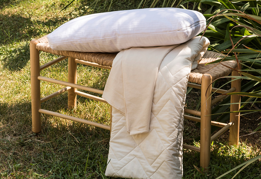 Almohada confeccionada íntegramente con algodón 100%, tanto el relleno como el tejido exterior. Está confeccionada con una doble funda de tejido 100% algodón con cremallera para una fácil extracción y lavado.
