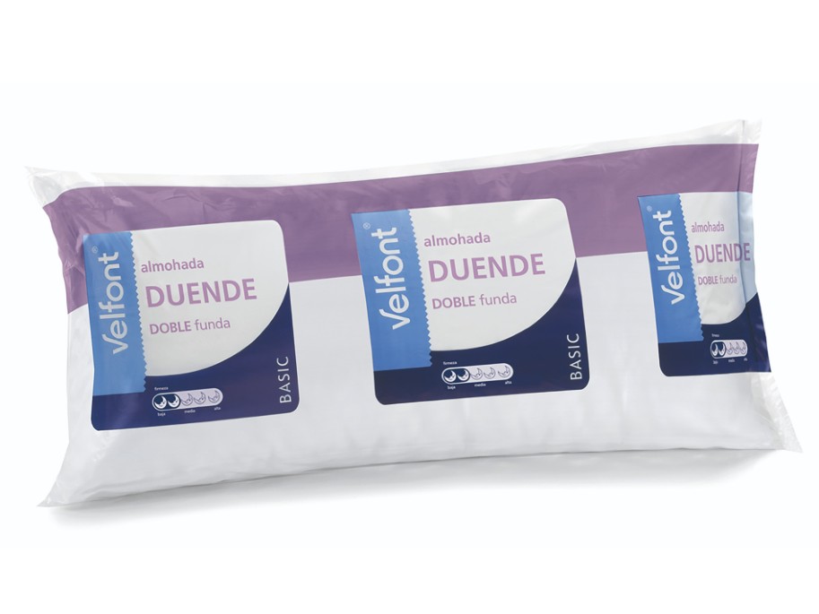 La Almohada Duende de Velfont es la almohada de menor firmeza de la colección. Está confeccionada con tejido de algodón peinado y diseño plumetti de gran calidad, y rellena de fibra hueca, siliconada y conjugada Neotherm®. Esta fibra aporta volumen, suavidad, ligereza y gran capacidad de recuperación. Es higiénica y transpirable, y muy resistente al uso y a los lavados.