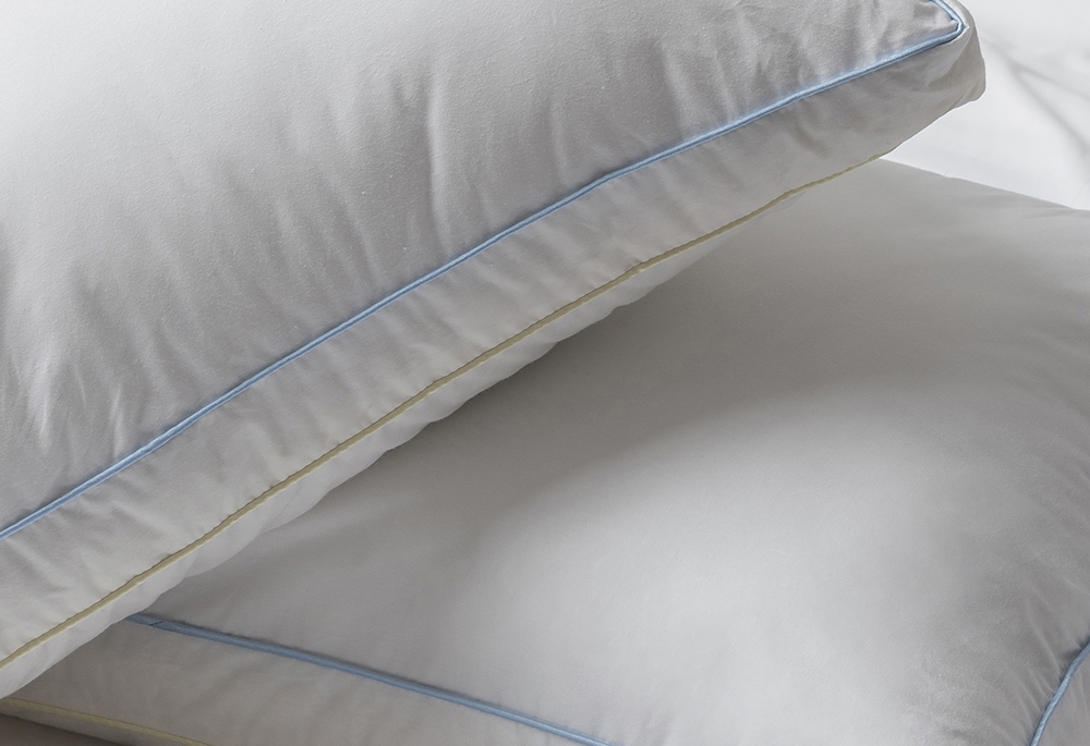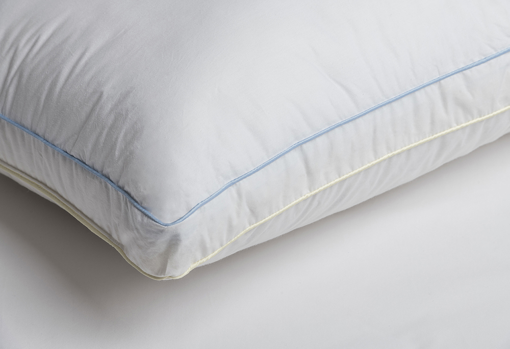 Además, el tejido exterior de la almohada Micro-Duvet es 100% algodón “down-proof” que evita el paso del finísimo relleno de plumón; añadir que esta almohada está confeccionada con doble ribete de color azul y dorado para diferenciar el tipo de relleno.