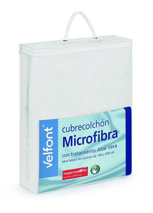 El Cubrecolchón Microfibra Aloe Vera Impermeable de Velfont está confeccionado con tejido de microfibra con un tacto extrasuave que incorpora un tratamiento Aloe Vera en la cara superior y laminado en polietileno en la inferior. El tratamiento Aloe Vera proporciona beneficios excepcionales a la piel además de aportarle suavidad al cubrecolchón, mientras que el laminado en polietileno lo convierte en impermeable, proporcionando una protección integral contra los líquidos. Este laminado hace, a su vez, de eficaz barrera física contra los ácaros pues éstos no pueden penetrar hasta el colchón. Este cubrecolchón se adapta a largos de colchón de hasta 200cm y puede asumir alturas de colchón de hasta 30cm.